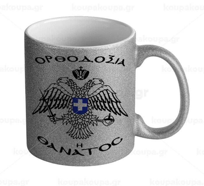 Ορθοδοξία ή Θάνατος, Κούπα Ασημένια Glitter που γυαλίζει, κεραμική, 330ml
