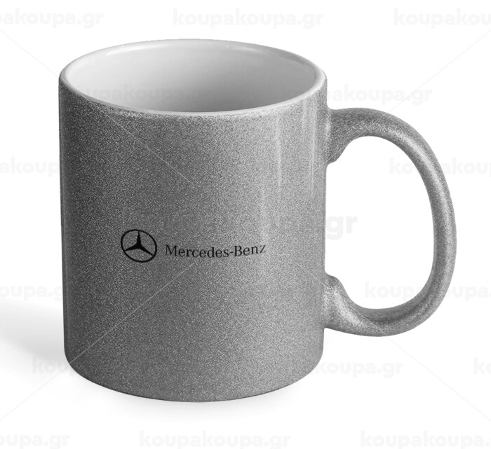 Mercedes small logo, Κούπα Ασημένια Glitter που γυαλίζει, κεραμική, 330ml