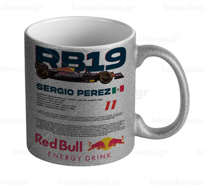 Redbull Sergio Perezi, Κούπα Ασημένια Glitter που γυαλίζει, κεραμική, 330ml