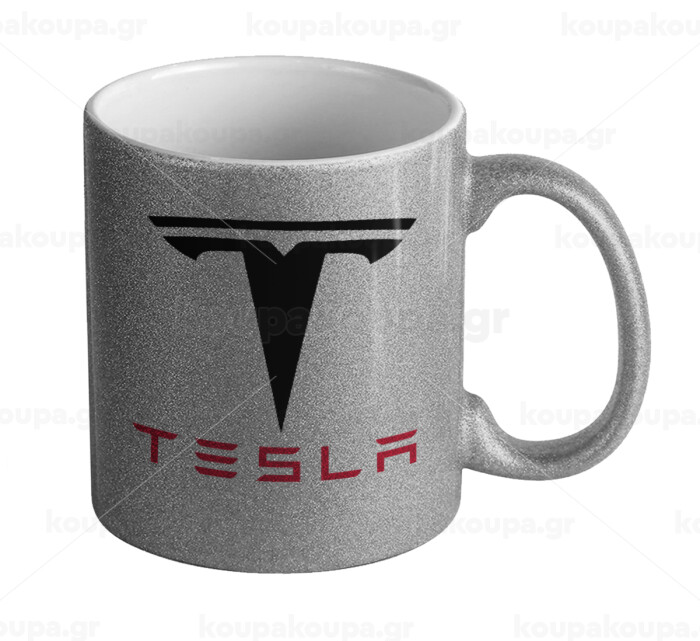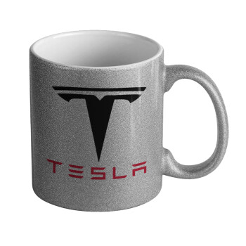 Tesla motors, Κούπα Ασημένια Glitter που γυαλίζει, κεραμική, 330ml