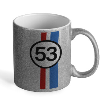 VW Herbie 53, Κούπα Ασημένια Glitter που γυαλίζει, κεραμική, 330ml