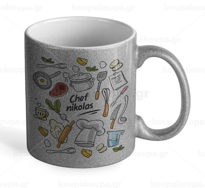 Chef με όνομα, Κούπα Ασημένια Glitter που γυαλίζει, κεραμική, 330ml
