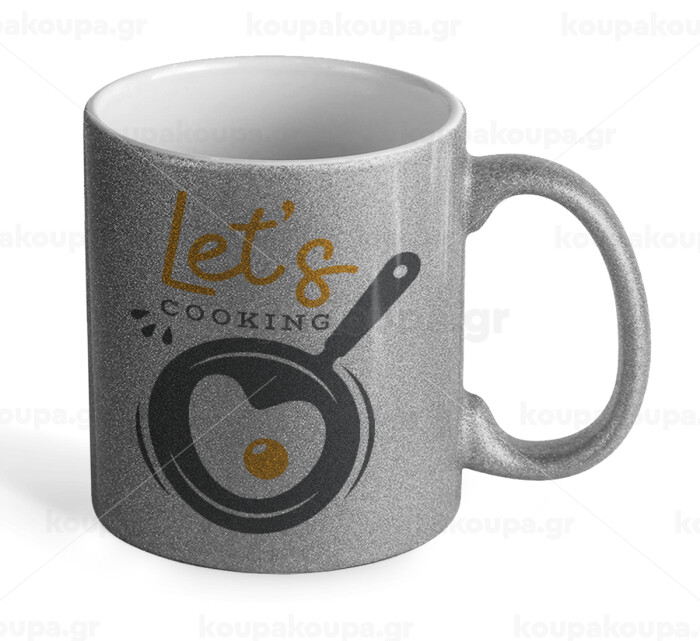Let's cooking, Κούπα Ασημένια Glitter που γυαλίζει, κεραμική, 330ml