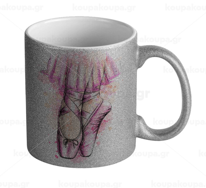 Ballerina shoes, Κούπα Ασημένια Glitter που γυαλίζει, κεραμική, 330ml