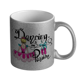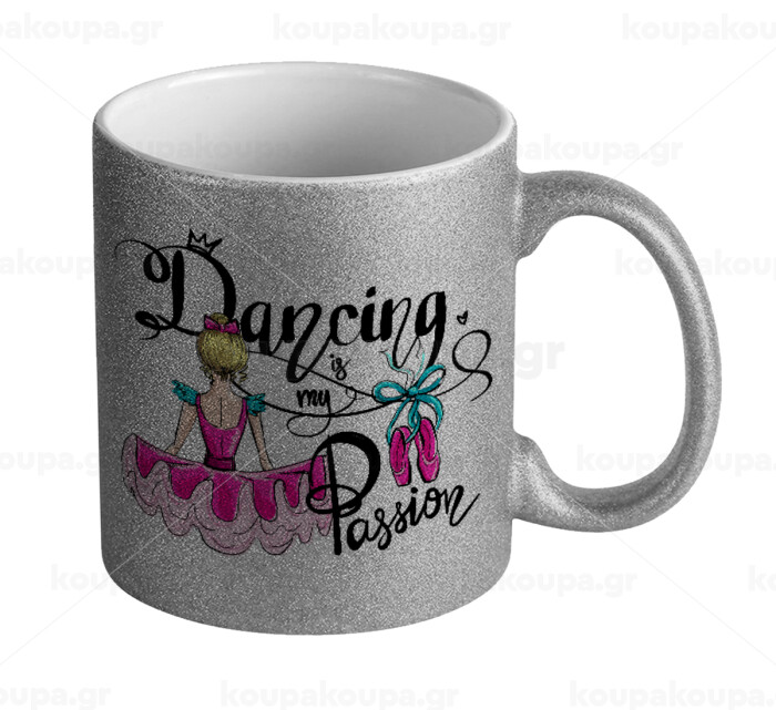 Dancing is my Passion, Κούπα Ασημένια Glitter που γυαλίζει, κεραμική, 330ml