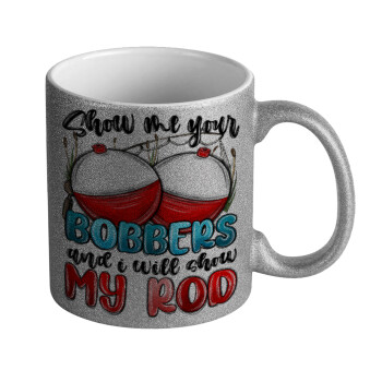 Show me your bobbers and i will show my rod , Κούπα Ασημένια Glitter που γυαλίζει, κεραμική, 330ml