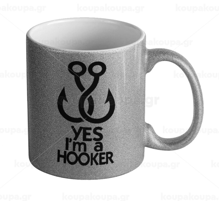 Yes i am Hooker, Κούπα Ασημένια Glitter που γυαλίζει, κεραμική, 330ml