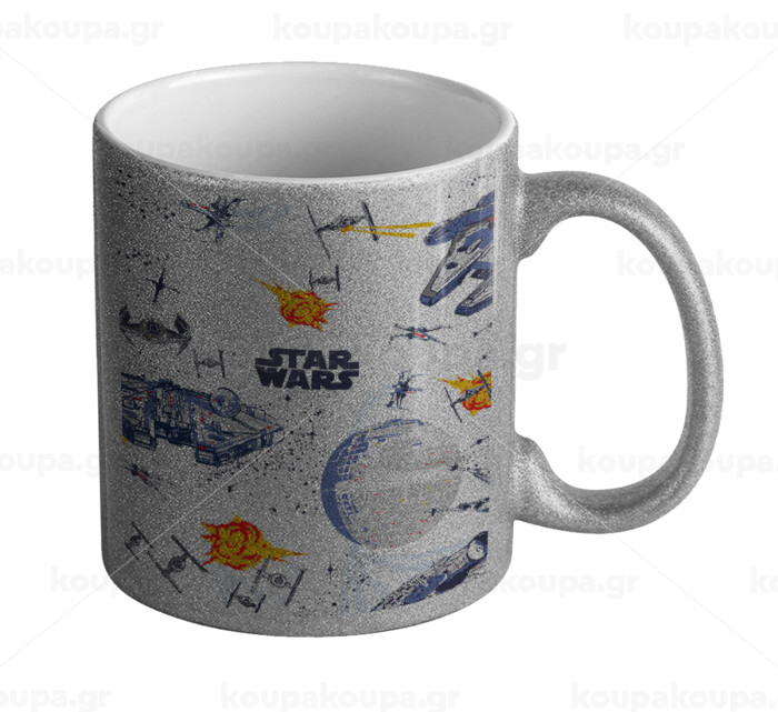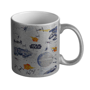 Star wars drawing, Κούπα Ασημένια Glitter που γυαλίζει, κεραμική, 330ml