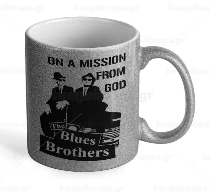 Blues brothers on a mission from God, Κούπα Ασημένια Glitter που γυαλίζει, κεραμική, 330ml