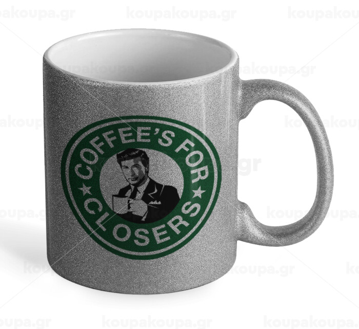 Coffee's for closers, Κούπα Ασημένια Glitter που γυαλίζει, κεραμική, 330ml