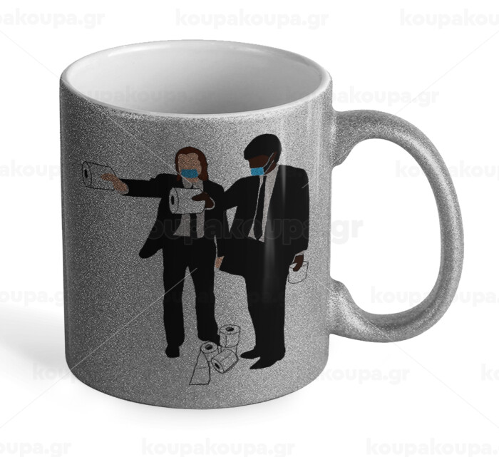Pulp Fiction 3 meter away, Κούπα Ασημένια Glitter που γυαλίζει, κεραμική, 330ml