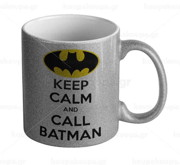 KEEP CALM & Call BATMAN, Κούπα Ασημένια Glitter που γυαλίζει, κεραμική, 330ml