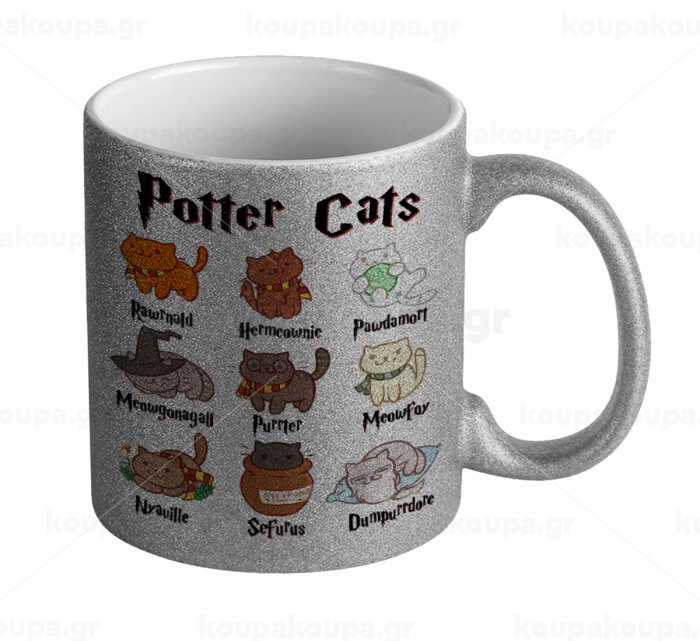 Potter Cats, Κούπα Ασημένια Glitter που γυαλίζει, κεραμική, 330ml