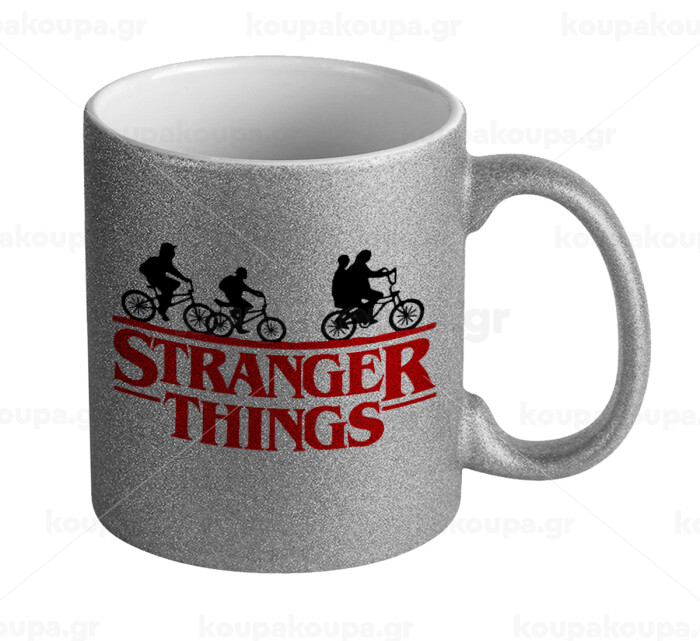Stranger Things red, Κούπα Ασημένια Glitter που γυαλίζει, κεραμική, 330ml