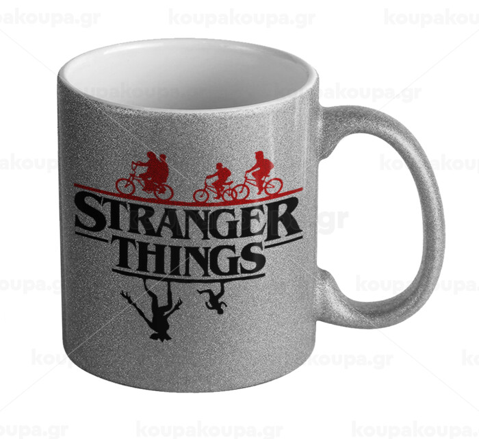 Stranger Things upside down, Κούπα Ασημένια Glitter που γυαλίζει, κεραμική, 330ml