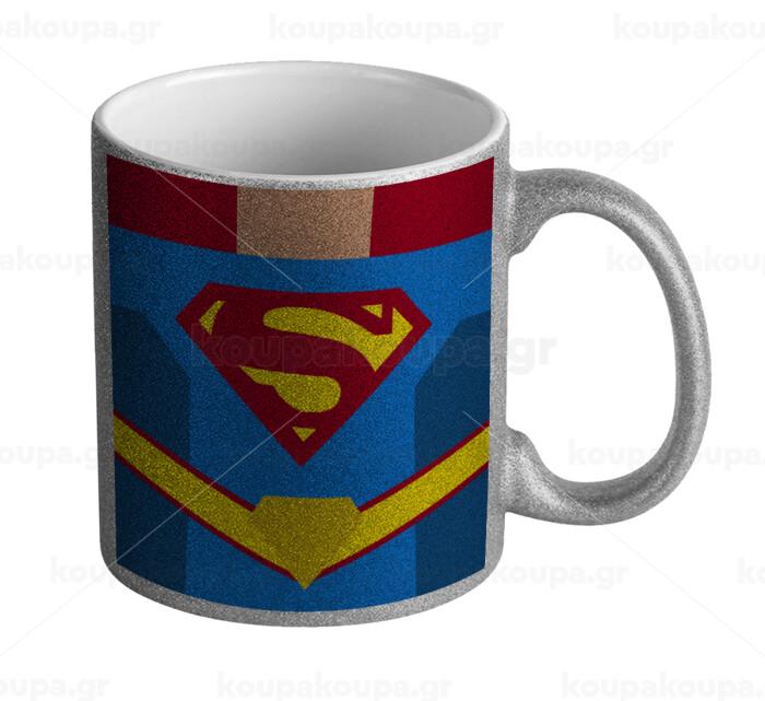 Superman flat, Κούπα Ασημένια Glitter που γυαλίζει, κεραμική, 330ml