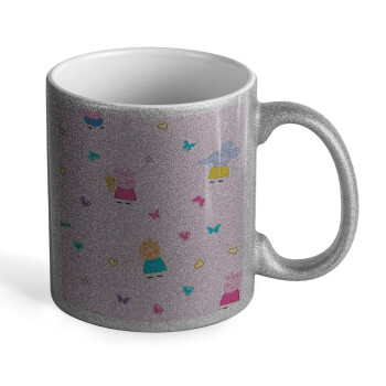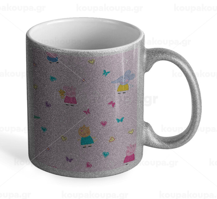 Πέππα το γουρουνάκι και οι φίλοι της, Κούπα Ασημένια Glitter που γυαλίζει, κεραμική, 330ml