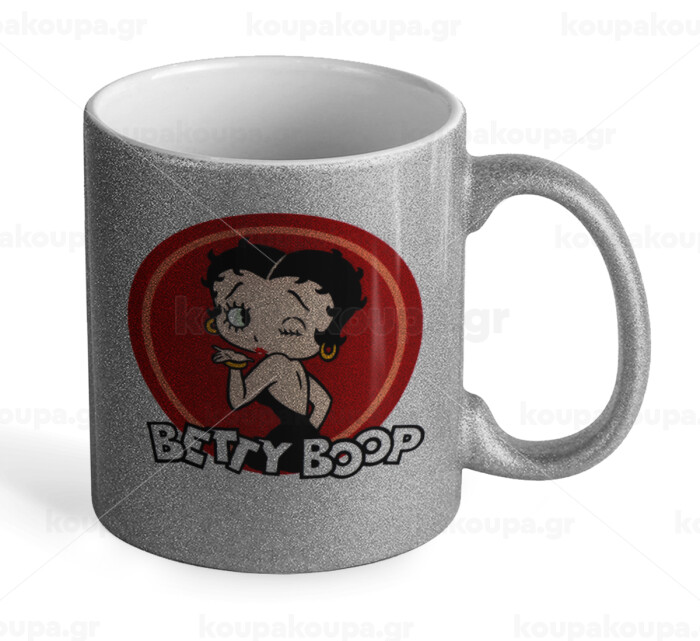 Betty Boop kiss, Κούπα Ασημένια Glitter που γυαλίζει, κεραμική, 330ml