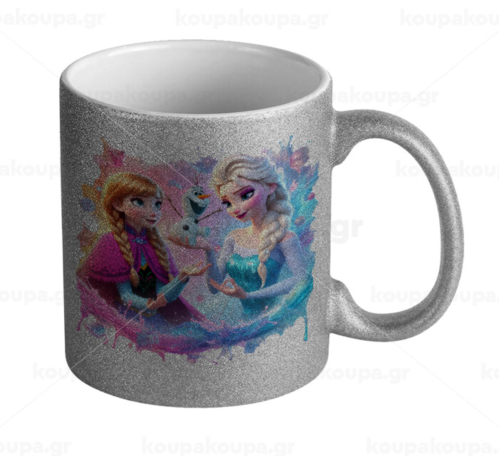 Elsa & Anna Princess, Κούπα Ασημένια Glitter που γυαλίζει, κεραμική, 330ml
