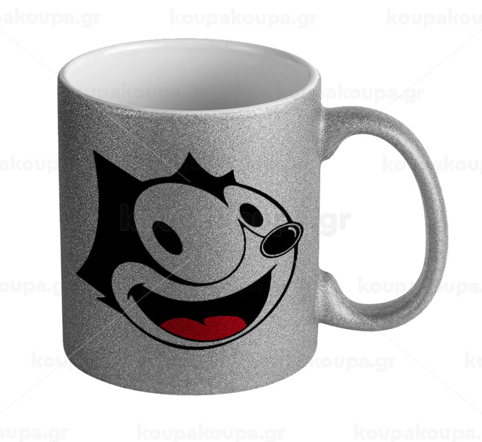 Felix the cat, Κούπα Ασημένια Glitter που γυαλίζει, κεραμική, 330ml