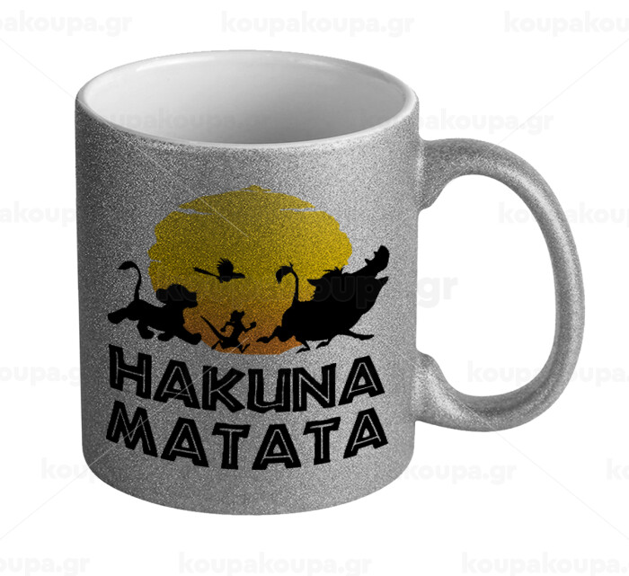 Hakuna Matata, Κούπα Ασημένια Glitter που γυαλίζει, κεραμική, 330ml