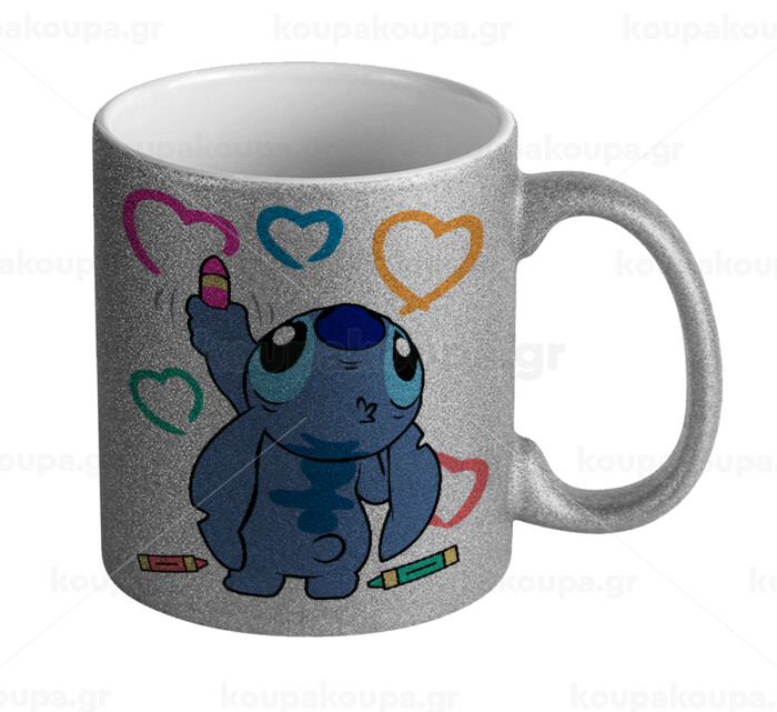 Lilo & Stitch painting, Κούπα Ασημένια Glitter που γυαλίζει, κεραμική, 330ml