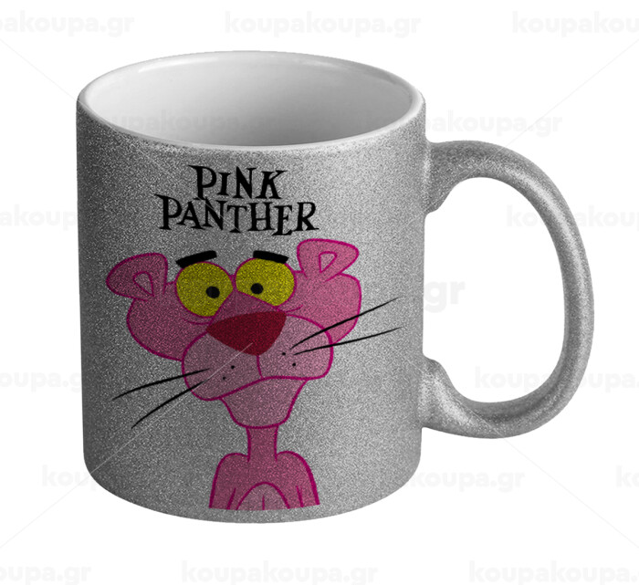 Pink Panther cartoon, Κούπα Ασημένια Glitter που γυαλίζει, κεραμική, 330ml