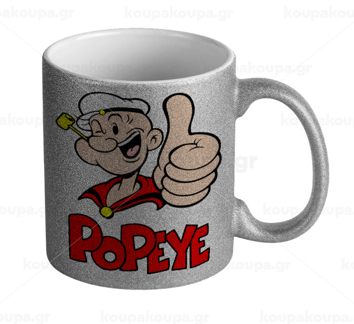 Popeye the sailor man, Κούπα Ασημένια Glitter που γυαλίζει, κεραμική, 330ml