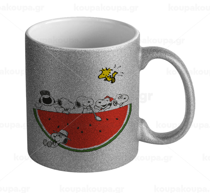 Snoopy summer, Κούπα Ασημένια Glitter που γυαλίζει, κεραμική, 330ml
