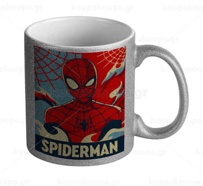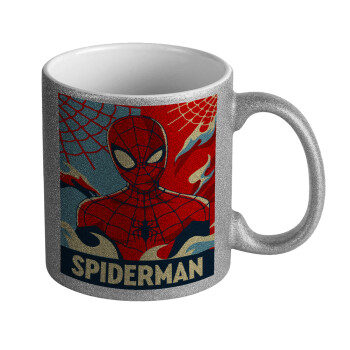 Spiderman kid, Κούπα Ασημένια Glitter που γυαλίζει, κεραμική, 330ml