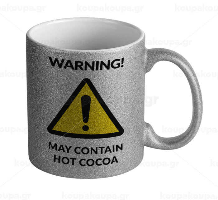 WARNING MAY CONTAIN HOT COCOA MUG PADDINGTON, Κούπα Ασημένια Glitter που γυαλίζει, κεραμική, 330ml