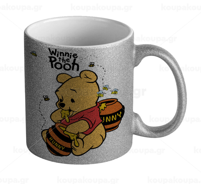 Winnie the Pooh, Κούπα Ασημένια Glitter που γυαλίζει, κεραμική, 330ml