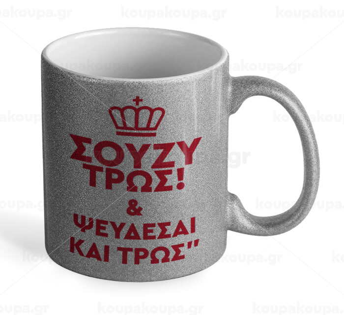 Σούζυ και ψεύδεσαι και τρως, Κούπα Ασημένια Glitter που γυαλίζει, κεραμική, 330ml