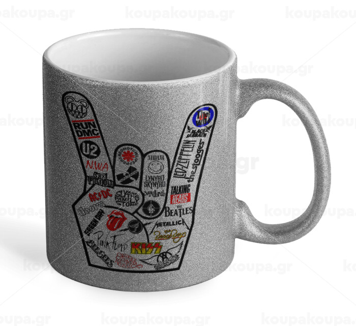 Best Rock Bands hand, Κούπα Ασημένια Glitter που γυαλίζει, κεραμική, 330ml