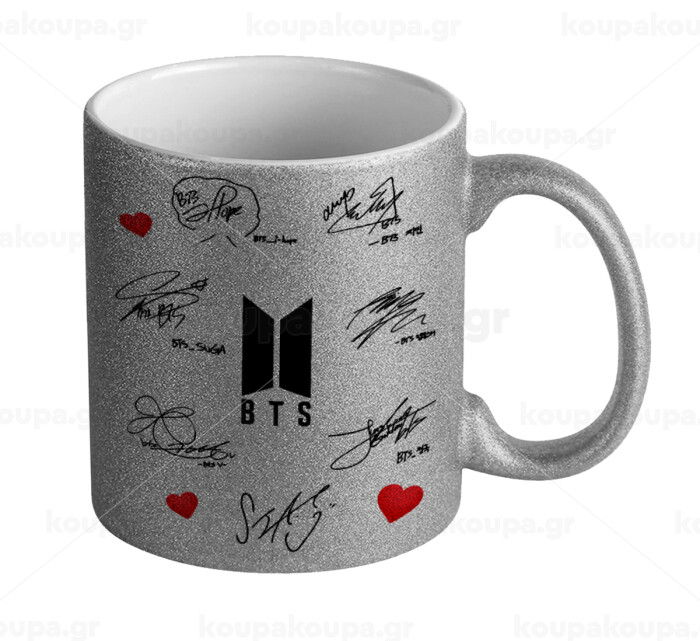 BTS signatures, Κούπα Ασημένια Glitter που γυαλίζει, κεραμική, 330ml