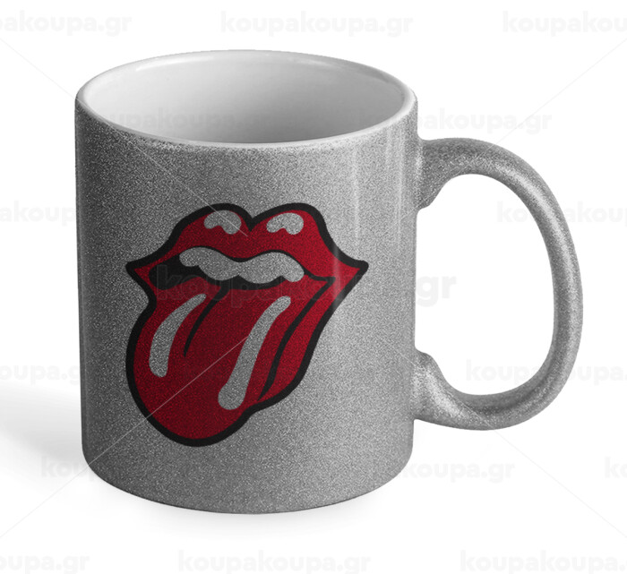 Rolling Stones Kiss, Κούπα Ασημένια Glitter που γυαλίζει, κεραμική, 330ml