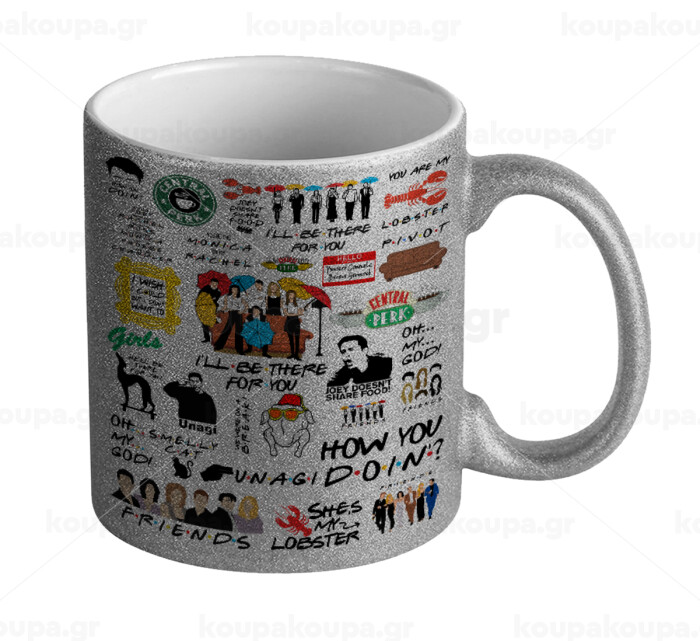 Friends, Κούπα Ασημένια Glitter που γυαλίζει, κεραμική, 330ml