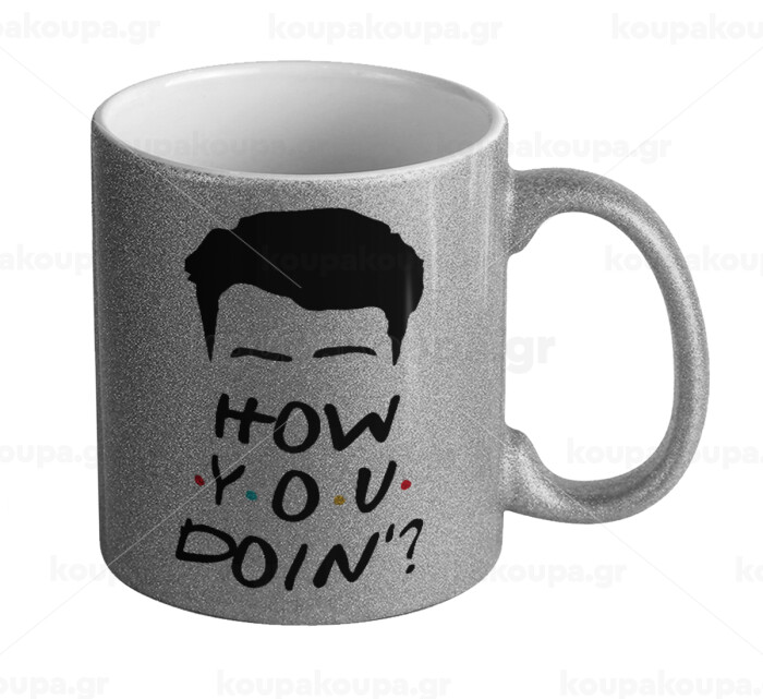 Friends how you doin?, Κούπα Ασημένια Glitter που γυαλίζει, κεραμική, 330ml