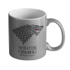 GOT House of Starks, winter coming, Κούπα Ασημένια Glitter που γυαλίζει, κεραμική, 330ml