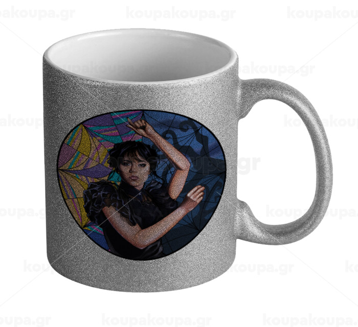 Wednesday dance, Κούπα Ασημένια Glitter που γυαλίζει, κεραμική, 330ml