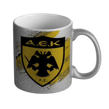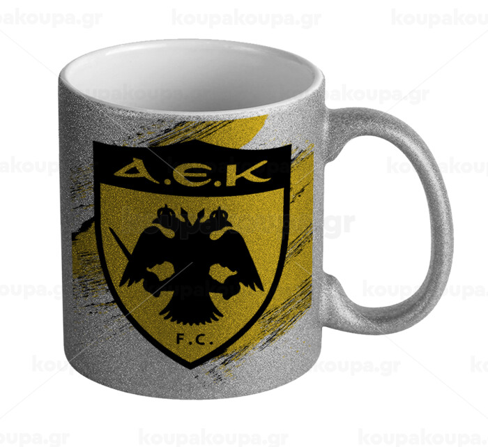 FC Α.Ε.Κ., Κούπα Ασημένια Glitter που γυαλίζει, κεραμική, 330ml