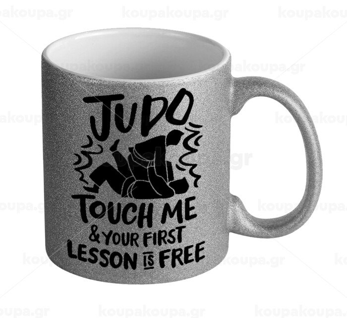 Judo Touch Me And Your First Lesson Is Free, Κούπα Ασημένια Glitter που γυαλίζει, κεραμική, 330ml