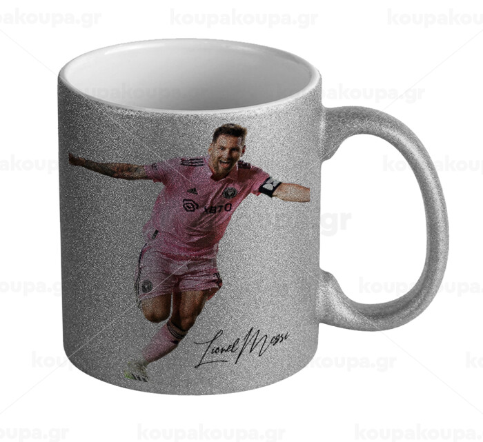 Lionel Messi inter miami jersey, Κούπα Ασημένια Glitter που γυαλίζει, κεραμική, 330ml
