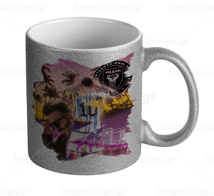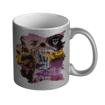 Lionel Messi Miami, Κούπα Ασημένια Glitter που γυαλίζει, κεραμική, 330ml
