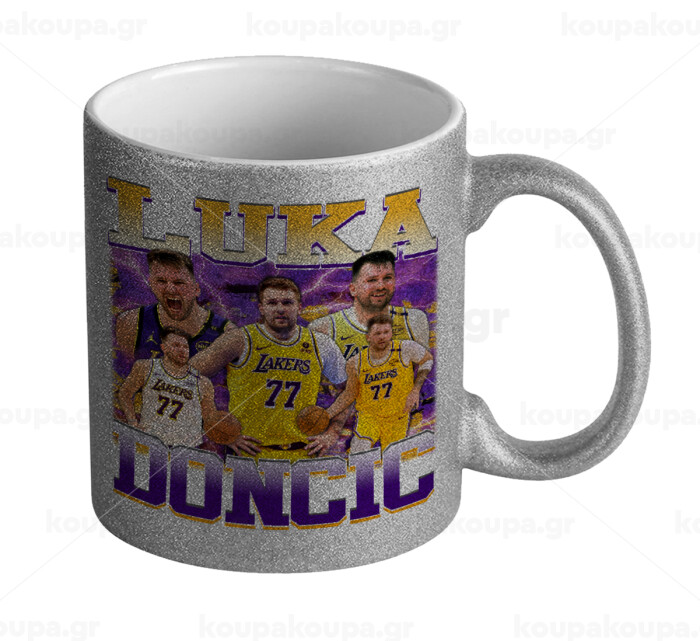 Luka Doncic Basketball , Κούπα Ασημένια Glitter που γυαλίζει, κεραμική, 330ml