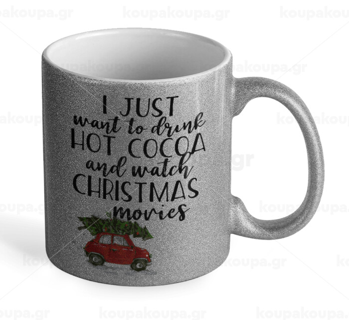 I just want to drink hot cocoa and watch christmas movies mini cooper, Κούπα Ασημένια Glitter που γυαλίζει, κεραμική, 330ml