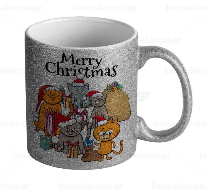 Merry Christmas Cats, Κούπα Ασημένια Glitter που γυαλίζει, κεραμική, 330ml