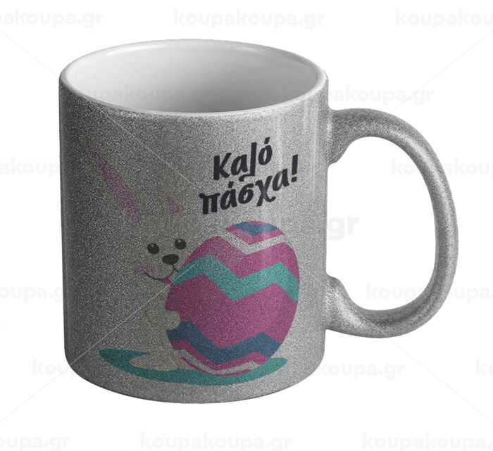 Καλό πάσχα, Κούπα Ασημένια Glitter που γυαλίζει, κεραμική, 330ml