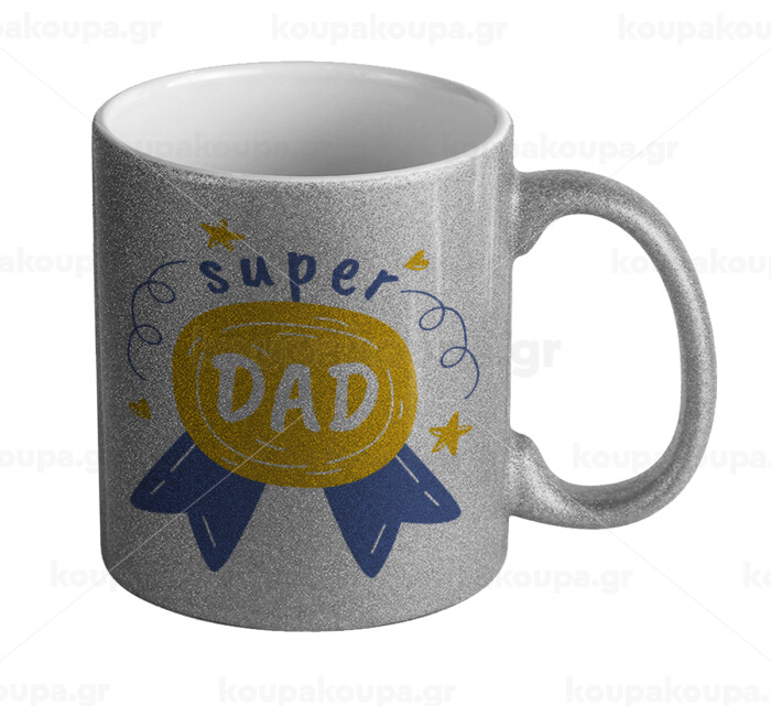 Μπαμπά είσαι για μετάλλιο, Κούπα Ασημένια Glitter που γυαλίζει, κεραμική, 330ml