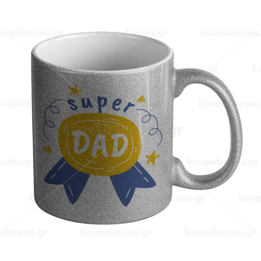 Μπαμπά είσαι για μετάλλιο, Κούπα Ασημένια Glitter που γυαλίζει, κεραμική, 330ml